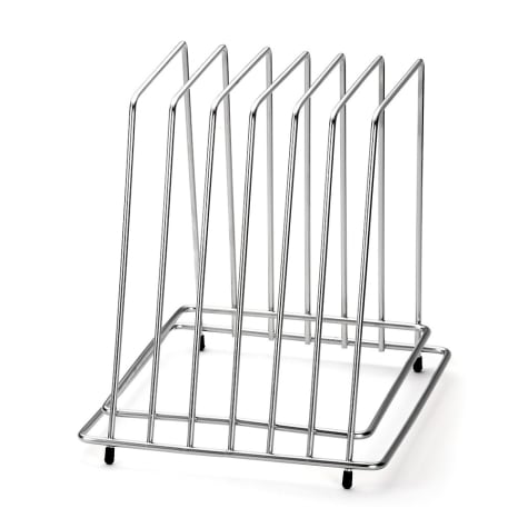 This Cutting Board Rack from TableCraft is designed with functionality and organization in mind and can securely hold up to six cutting boards. A perfect companion for your color-coded cutting boards! Made from high-quality stainless steel, the rack is robust and durable, making it able to withstand the demands of your busy kitchen. Storing boards in the rack also frees up more room in your workplace, helping you make the most of your kitchen space.