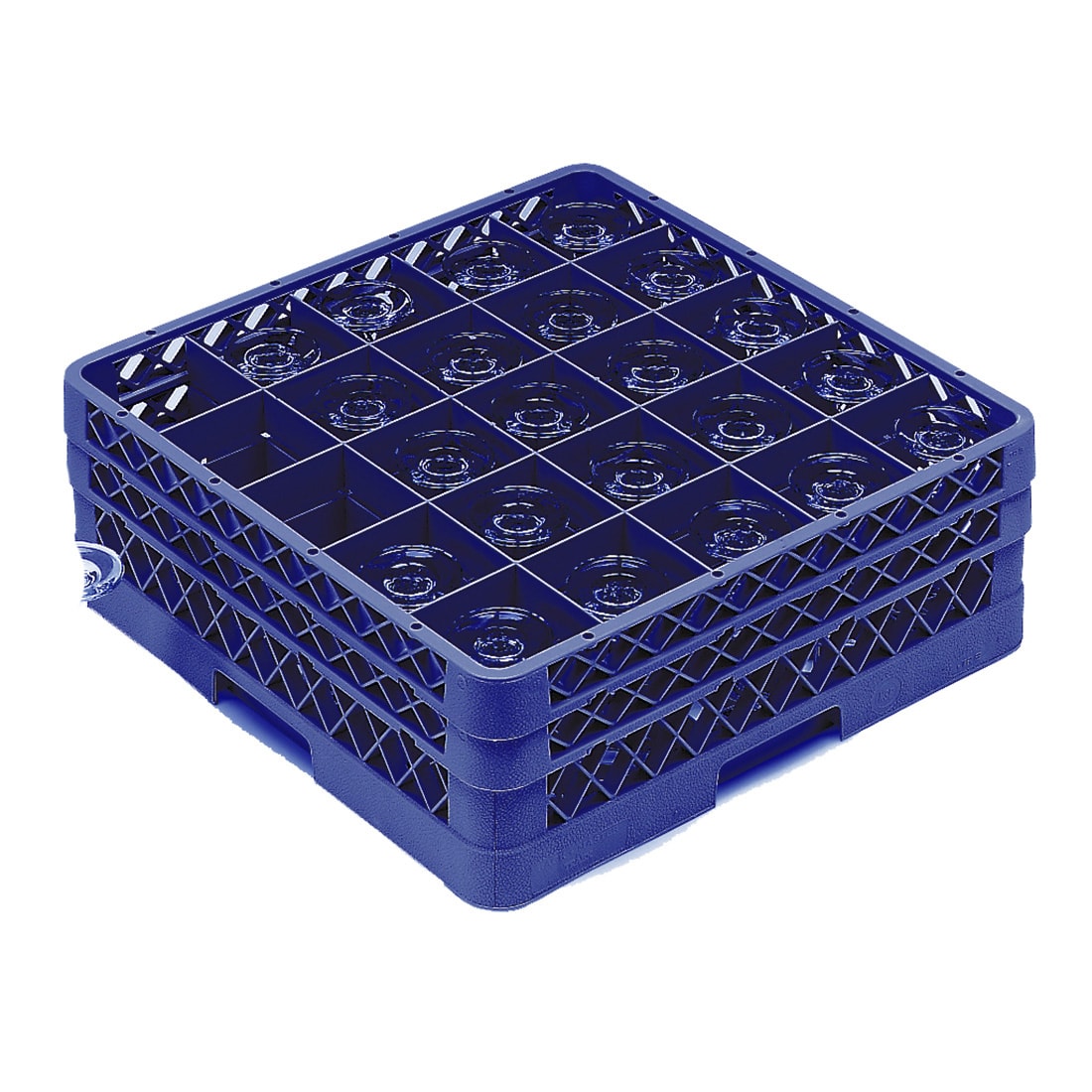 This Traex royal blue 25 compartment glass rack base has three extenders and one open end extender.