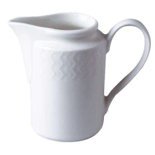 This RAK Leon Creamer has a 5 Oz. capacity and is perfect to serve alongside hot beverages. It is made from white porcelain, and has an embossed design. This creamer is microwave and dishwasher safe.