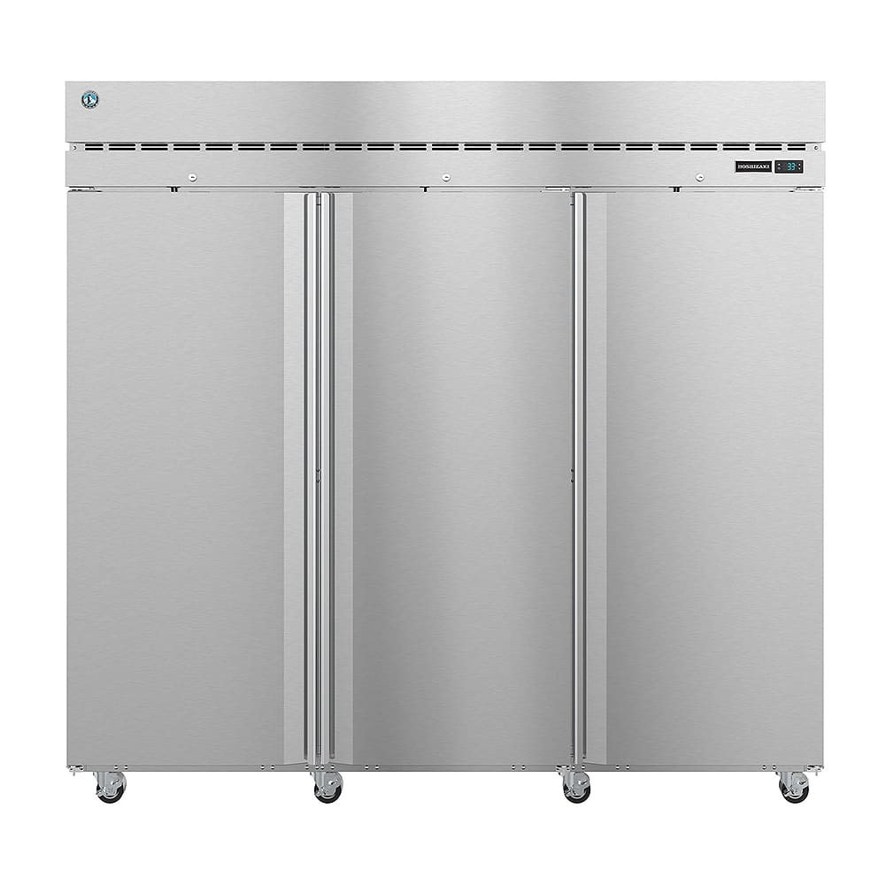 The R3A‐FS reach‐in three door refrigerator is all stainless steel and a durable workhorse for any business. The dependable 1/4 HP motor that powers the compressor provides a continuous stream of cold air through the cabinet to maintain a steady, constant temperature. It is easy to clean and has three shelves in each section for plenty of storage.