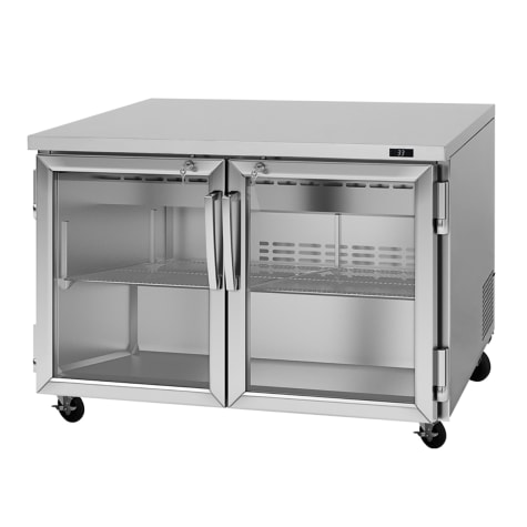 This Turbo Air two swing door undercounter refrigerator features environmentally friendly R290 hydrocarbon refrigerants. The entire cabinet and doors are insulated using high density, CFC free polyurethane insulation that helps hold temperatures between 33°F ‐ 38°F for excellent food preservation. The LED lighting makes it easy to see inside and the stainless steel construction is easy to clean.