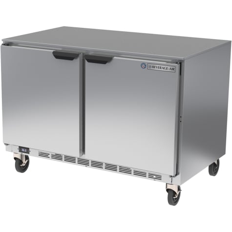 This Beverage‐Air refrigerator features stainless steel construction with an interior liner that is made of corrosion resistant aluminum. It also features full electronic control and an interior thermometer. The self‐closing doors have a 120° stay‐open feature for easy loading and unloading. Plus the door removes easily for cleaning.