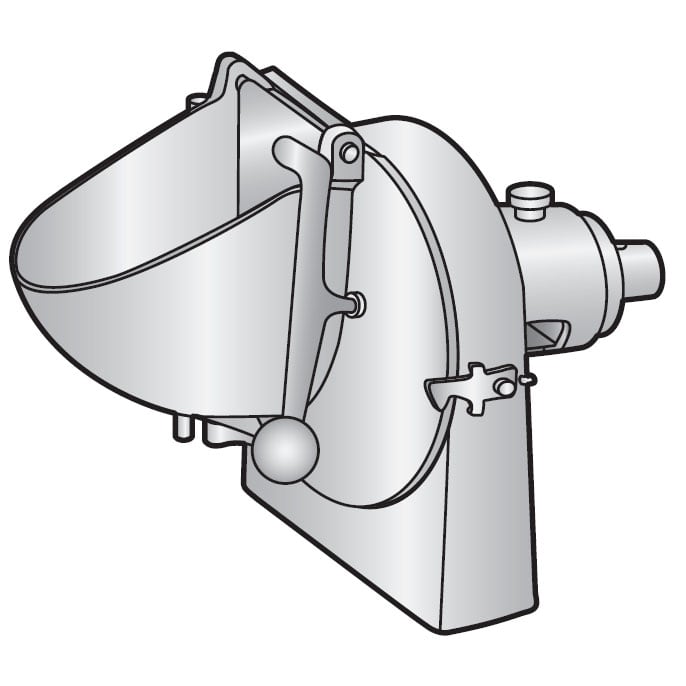 This Grater/Shredder Attachment is a high-performance, NSF-approved accessory designed for use with standard #12 mixer hubs, including Classic Hobart, Legacy Hobart, Globe, Univex, Varimixer, Precision, Thunderbird, and Intedge Mixers. Crafted from heavy-gauge polished aluminum, it features a precision-machined hardened shaft for superior durability and smooth operation. The unit comes complete with a housing, door, pusher plate, and a 3/16" shredder disc, making it ideal for grating cheese, shredding vegetables, and other food prep tasks.