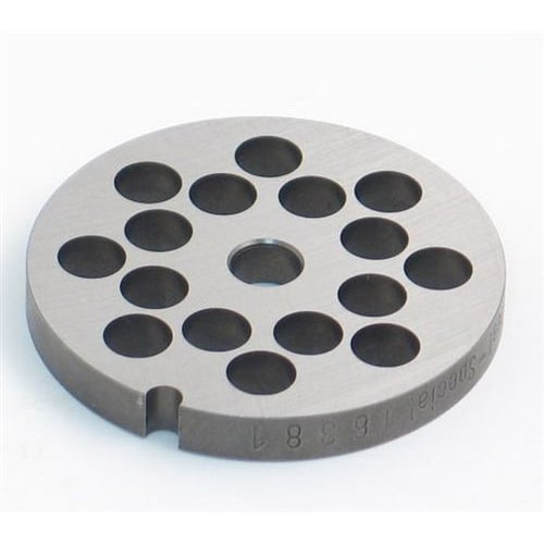 This Chopper Plate is a premium hubless grinder plate designed for #12 meat grinders and power attachments. It's crafted from durable steel and features a 3/8" hole size—ideal for coarse grinding applications like chili meat or sausage prep. Engineered with a high-density hole pattern, this plate ensures efficient throughput and consistent texture.