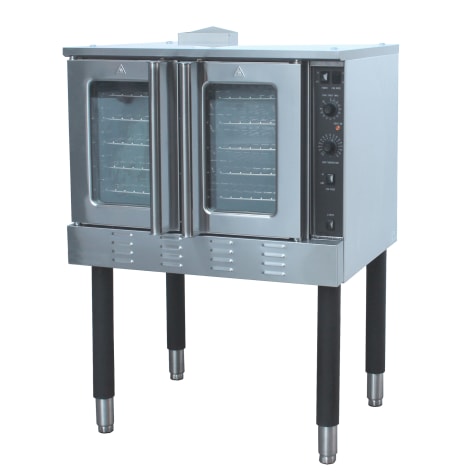 This full size convection oven is ideal for use in busy restaurants. It is constructed of durable stainless steel and features a porcelain lined interior with seamless corners that is easy to clean. This oven operates with a forced air, two speed fan motor system with a cool down feature and a 60 minute continuous timer with manual shut‐off.