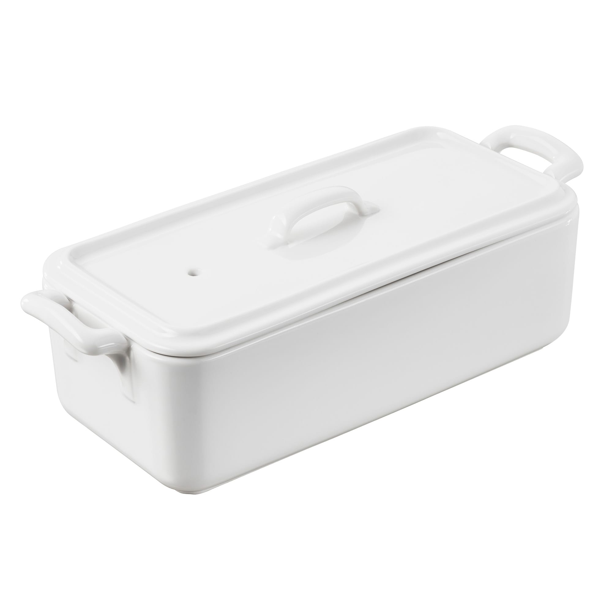 This Revol® USA Belle Cuisine Terrine is made from white porcelain and includes a lid. It has a 35.25 Oz. capacity and comes in a 9 x 4.5" size. It is oven safe to 572°F