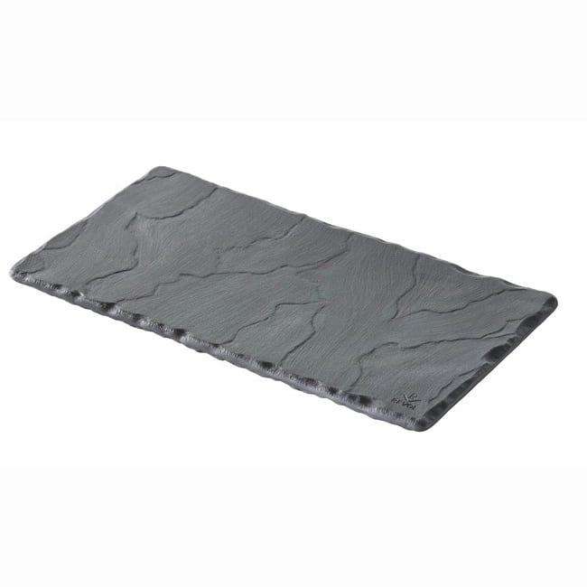 This Revol® USA Basalt Tray is made from ceramic and comes in a matte slate color. It is a 7.75 x 4" size and is 100% food safe. This tray can be used in the oven