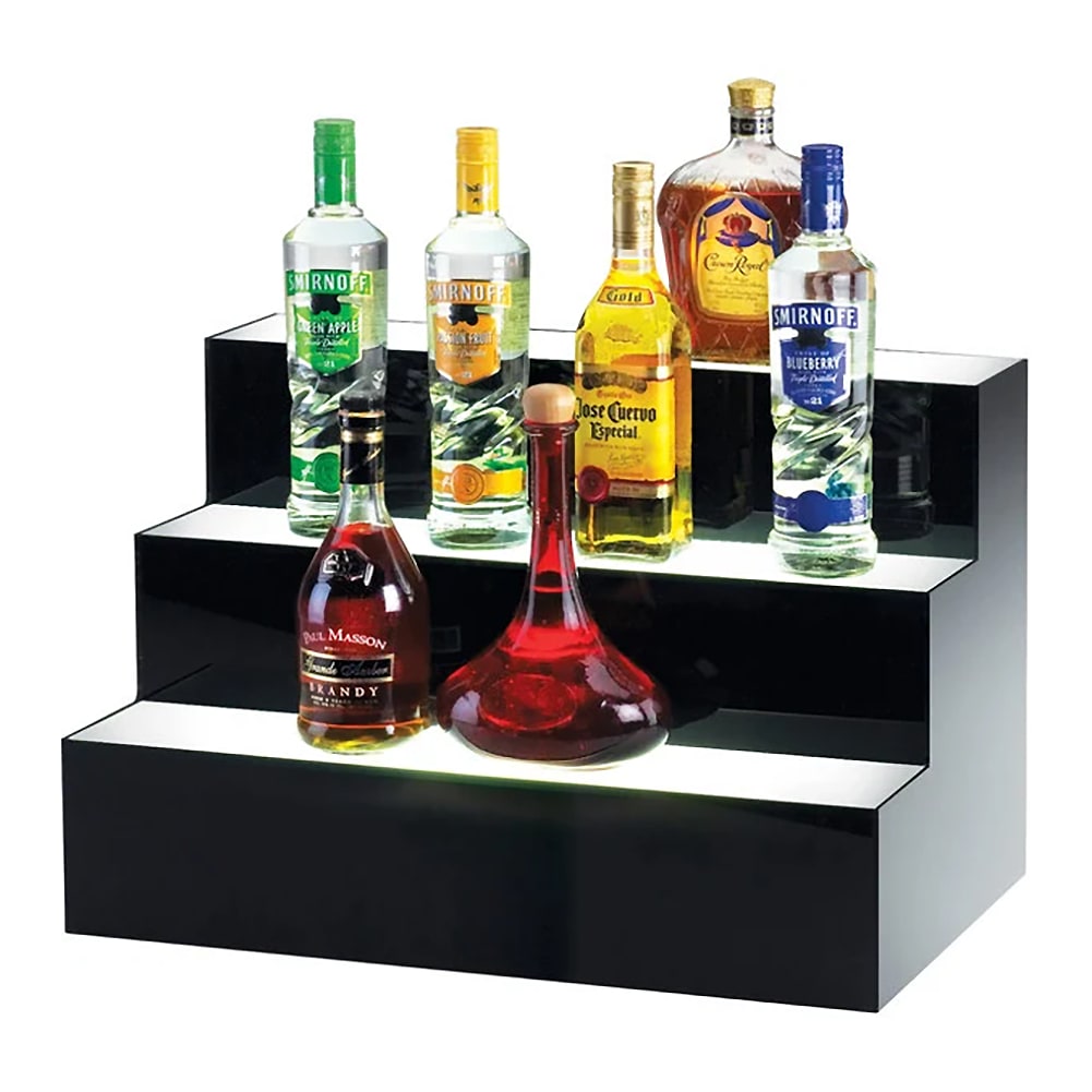 This 3-tier bottle riser from Cal-Mil is perfect for your home or commercial bar. This riser is large enough to show off a generous assortment of bottles, and the three tiers provide multiple levels to show off all of your liquor bottles to their best advantage. You can use just one stand to display a selection or use many stands together to create a bar-length display and demonstrate the diversity of your liquor stock.
