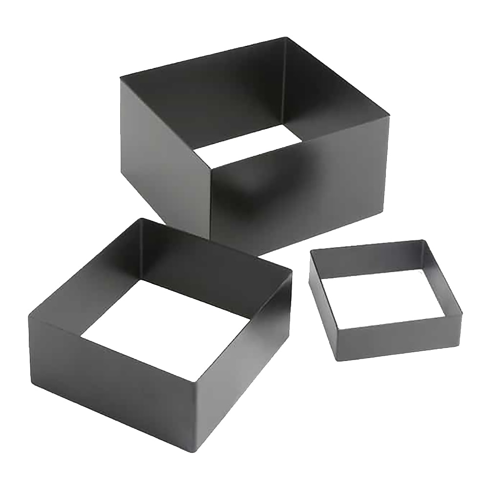 With a sleek satin finish and minimalist design, these modern square black risers from American Metalcraft are always en vogue.