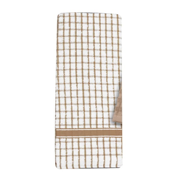 This Ritz® Classic Kitchen Towel is made from 100 percent terry cotton and has a check design in a natural and taupe color. It is a 16 x 26" size and is perfect for any kitchen.