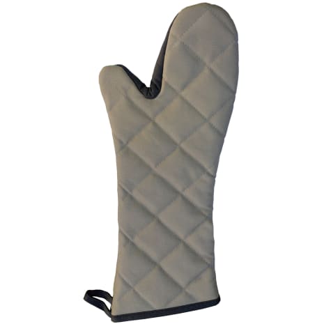 This duraSERV® Oven Mitt from Chef Revival® is 17 inches long and is long enough to reach most elbows to protect more of your arm from burns. It features a seamless grip that prevents heat penetration and is heat resistant up to 450°F.