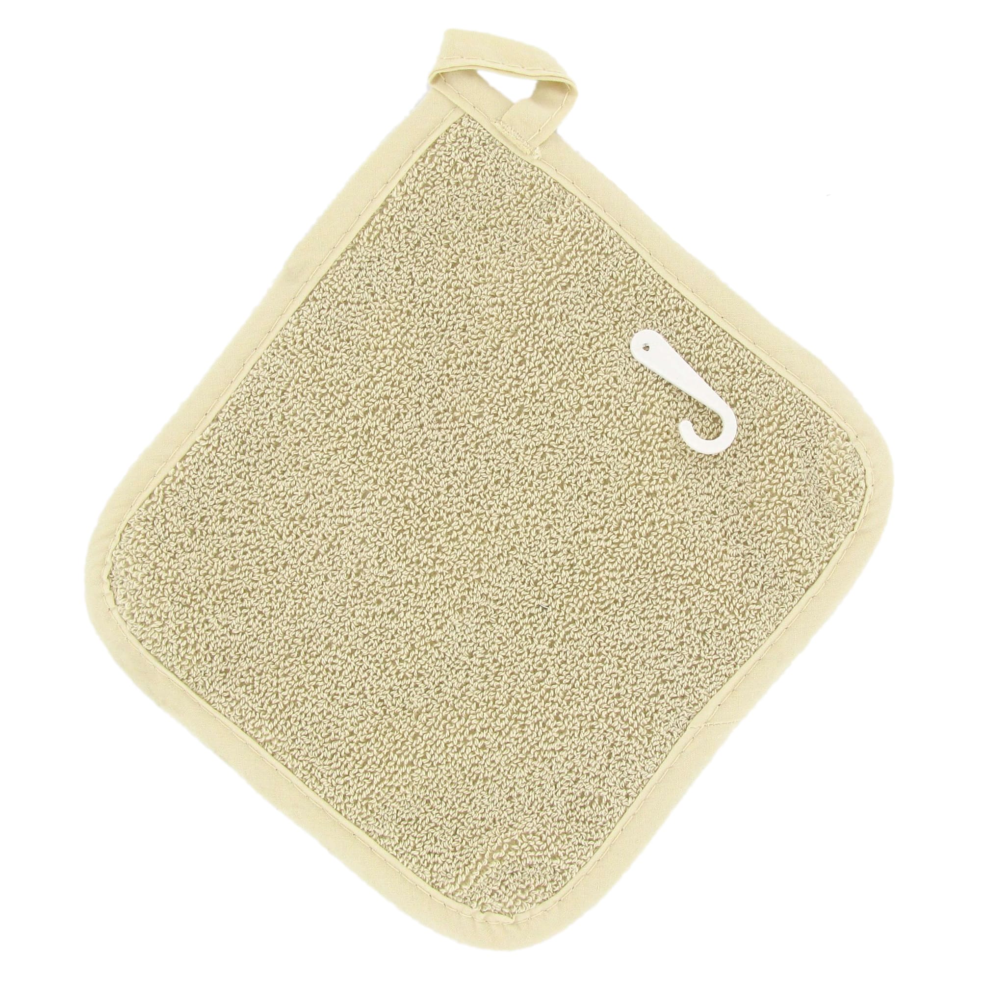 This Darling Foodservice Pot Holder is 8.25 x 8.5" and is made from 100% terry cotton. The latte color will blend with just about any decor.