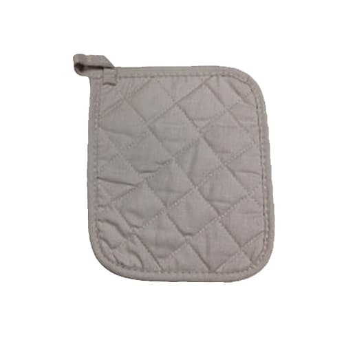 This pot holder is made from 50% cotton / 50% poly percale and comes in a taupe color that will blend with most kitchen decors. It features a quilted design and is a 7" x 8" size.
