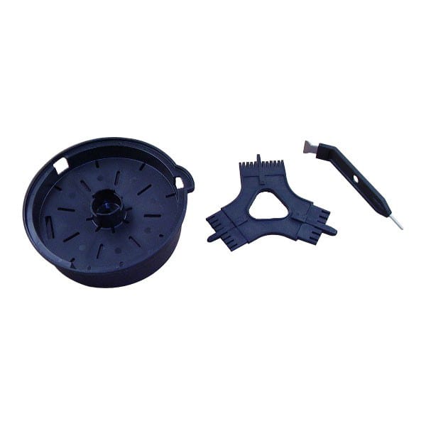 Keep your food processor in great condition with this cleaning kit from Robot Coupe. This kit includes a dual-sided grid holder that works with small and large discs. It also includes a scraper and and three-sided tool to remove food debris from your discs.