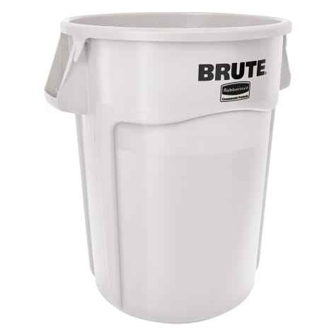This white 44 gallon container without lid features the renowned durability of the BRUTE™ line, with all‐plastic professional‐grade construction that will not rust, chip, peel and resists dents. It has reinforced rims for added strength, built‐in handles that make carrying easy and prevent jamming when nesting, and a double‐ribbed base that increases stability and dragging capacity. No container is more versatile.