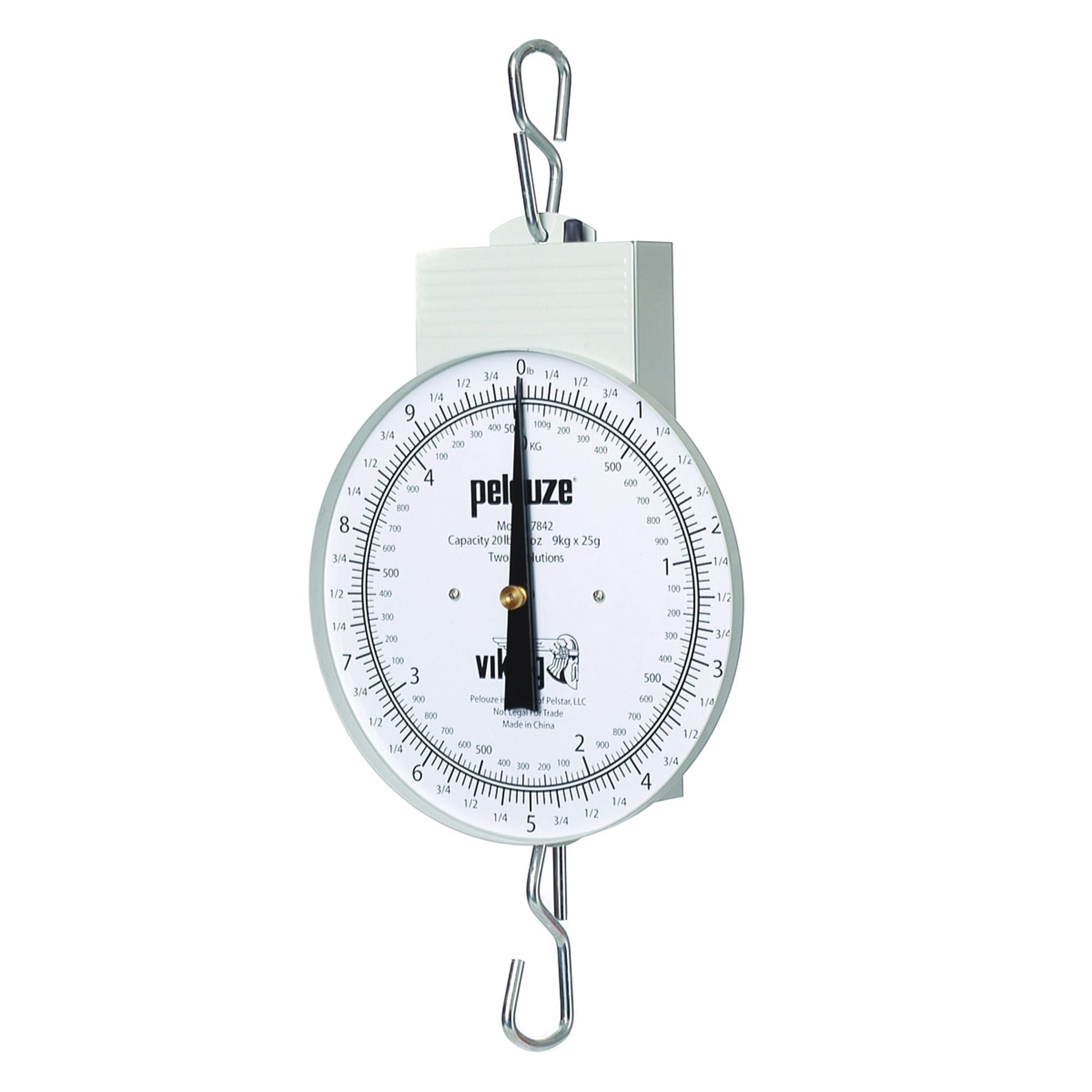 This dial hanging scale from Rubbermaid® is made from heavy-duty steel and is for multi-purpose weighing. It features a zero adjust knob and includes two industrial grade steel hooks. This scale measures in 1 ounce increments.