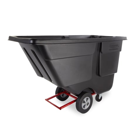 This black utility duty 1 cubic yard tilt truck features industrial‐strength, rotational molded construction that lets you move heavy loads with ease. Its smooth surface resists corrosion and is easy to clean, and the constant force design allows for controlled dumping by just one person. It also has a 5" center swivel caster for better maneuverability and 12" inset big wheels that can handle uneven terrain while also protecting walls and fixtures.