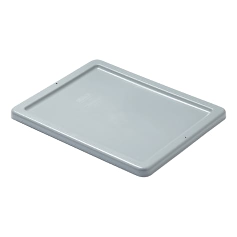 This gray lid fits Palletote storage boxes 1721 and 1722, snapping on tightly to prevent product damage during transport. This lid can also be secured using nylon ties.