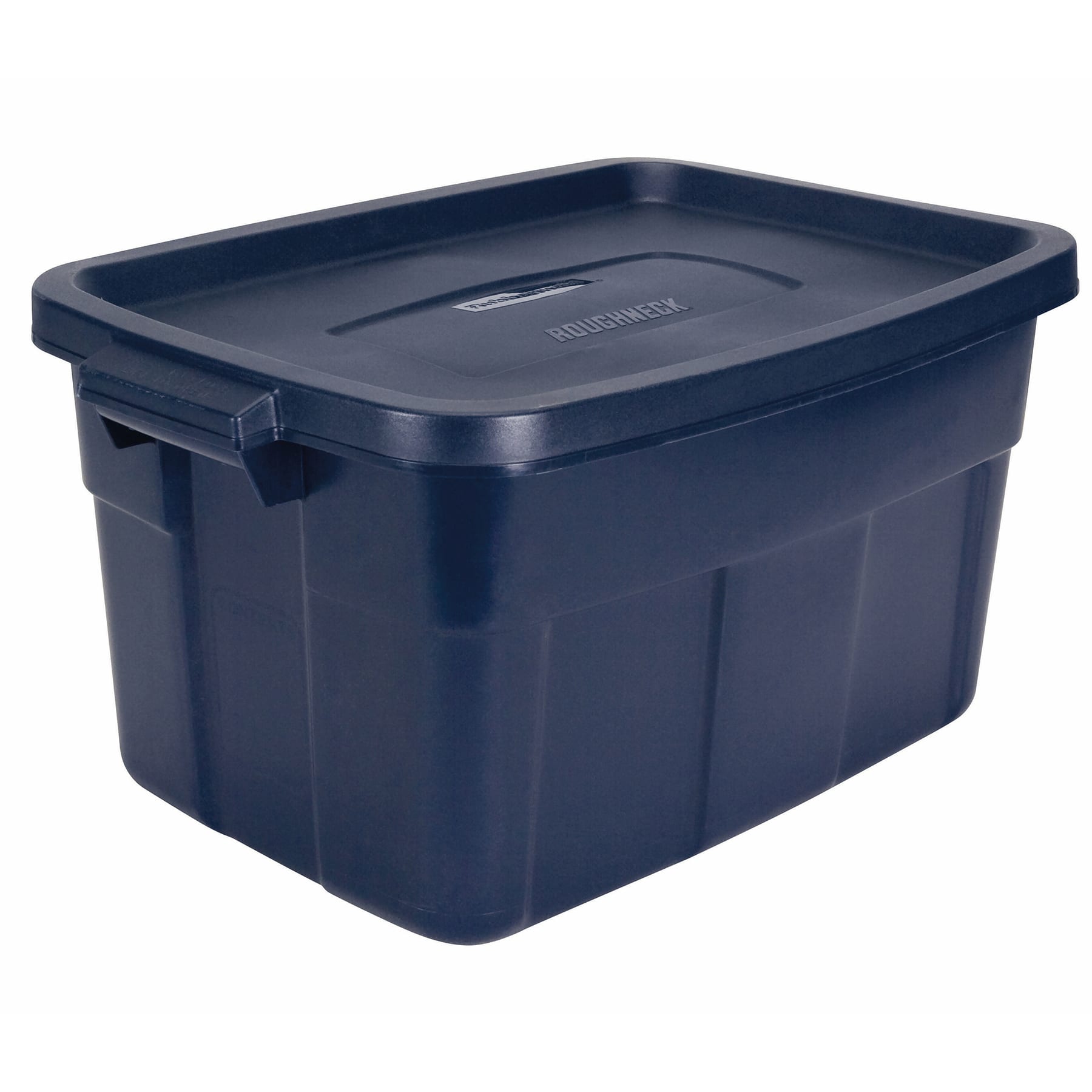 This Rubbermaid® Roughneck™ 14 gallon tote provides durable storage that will keep your things safe. The sturdy container can withstand harsh temperatures that go from hot to cold, such as attics and basements.
