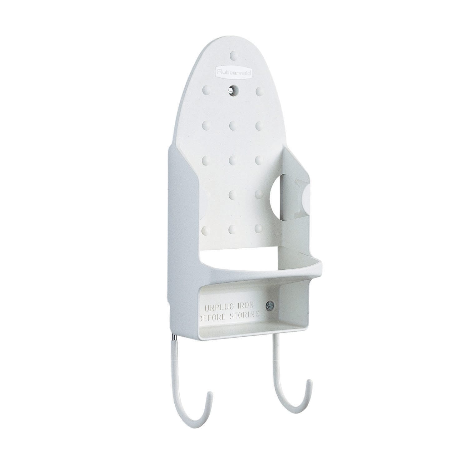 This white ironing organizer is 15" high and mounts easily on virtually any wall to give you a convenient way to store both your iron and ironing board in the same place. It is made of durable, heat‐resistant plastic that won't be damaged by hot irons and has a visually attractive design that complements many types of room decor.