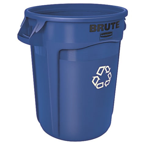 This 32 gallon recycling container without lid features the renowned durability of the BRUTE™ line, with all‐plastic professional‐grade construction that will not rust, chip, peel and resists dents. This container can serve as a central deposit unit for many smaller containers, reducing the amount of handling and effort required to collect all the recycling in one area, and it also contains post‐consumer recycled material, offering you two ways to help protect the environment in one.
