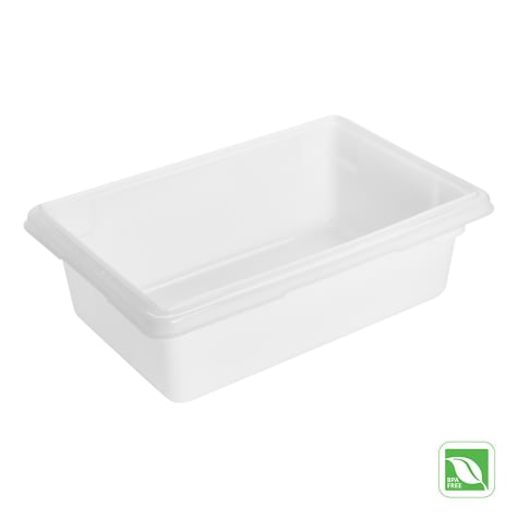 This white 3.5 gallon food and tote box is a convenient way to maximize storage space while reducing food spoilage costs. Its white polyethylene construction is durable and economical, as well as dishwasher and freezer safe. Use with tight‐fitting snap‐on lid (sold separately) to keep food fresh, and space is provided on both the box and lid for date control labels.