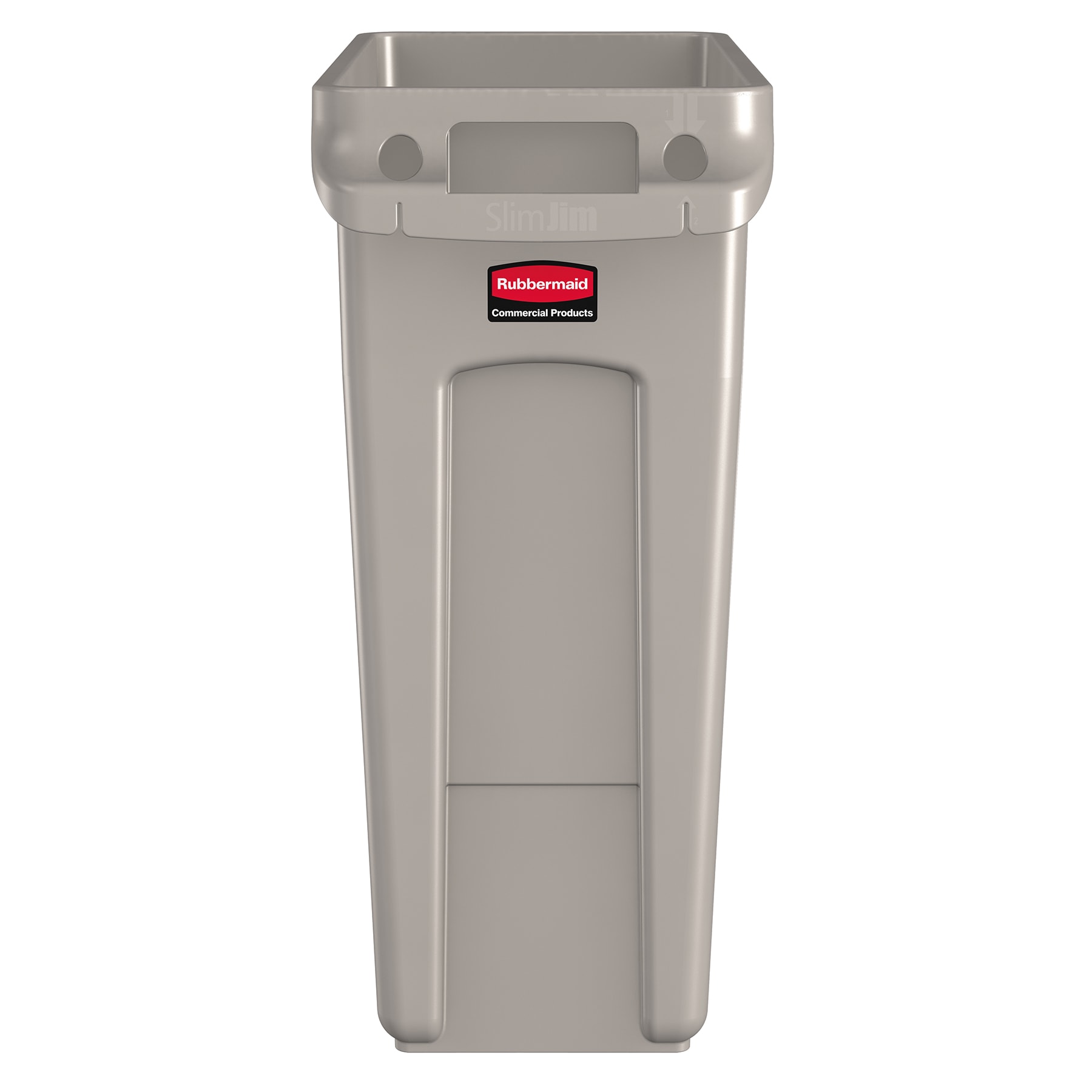 This 16 gallon waste container with handles features the trademark space‐saving design of the Slim Jim line that fits under counters, next to desks, or wherever else you need it. Its all‐plastic construction is durable and easy to clean, giving it long usage life.