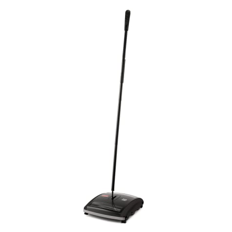 This black 44" brushless mechanical sweeper with non‐marking rubber blades is the simple solution for quickly cleaning up dust, debris, and even semi‐liquid debris from a variety of floor surfaces. It's low profile allows you to reach underneath furniture and low ledges, while its wide 7.5" sweep path makes it efficient. To make debris disposal easy, you can look through the tinted window first to see if emptying is necessary, then open either of the two one‐touch emptying doors to dump out the canisters. The body of this sweeper is made of strong galvanized steel and durable plastic, while the soft rubber wheels glide smoothly over both hard floor and carpet.
