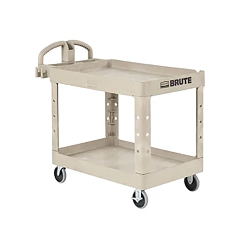 This 2‐shelf utility cart features sturdy, lightweight structural foam construction that Will Not rust, chip, dent or peel, making it good for use in any work environment. It's rounded corners protect your wall and furniture, and its large, non‐marking casters are easy on your floor and give the cart good maneuverability. Ergonomically designed push handle provides optimum hand placement and push height improving control and worker safety.