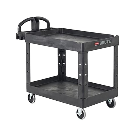 This heavy duty utility cart from Rubbermaid features sturdy, lightweight structural foam construction that Will Not rust, chip, dent or peel, making it perfect for use in any work environment. It's rounded corners protect your wall and furniture, and the large, 4" non‐marking swivel casters are easy on your floor and give the cart good maneuverability. Ergonomically designed push handle provides optimum hand placement and push height improving control and worker safety.