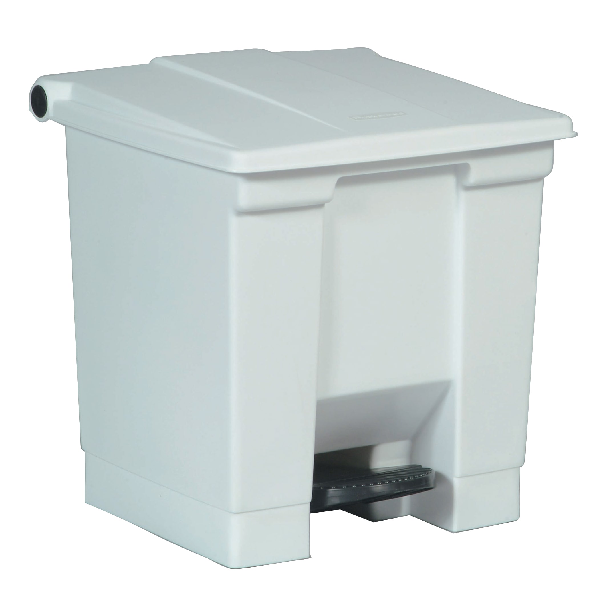 This Rubbermaid 8 gallon white step‐on waste has a lid that swings shut to trap in odors. It is designed for easy cleaning and is made of a durable plastic that is tough and puncture resistant. It is also leak resistant. Great choice for any kitchen.