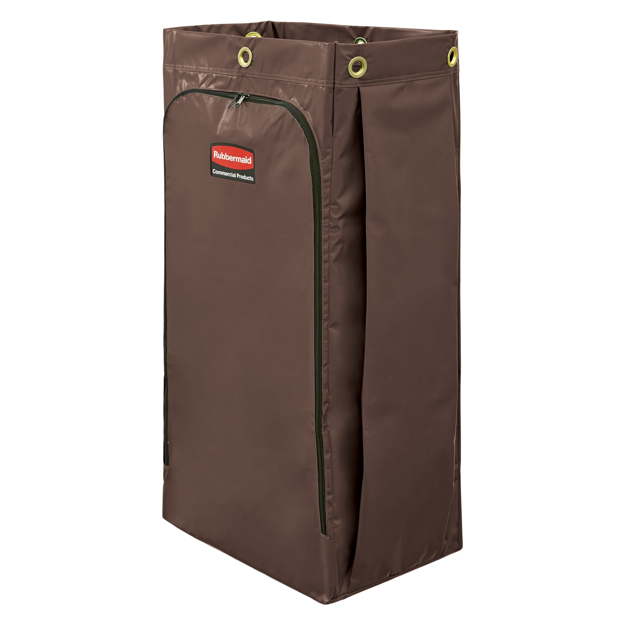 This replacement brown vinyl bag with zippered side opening fits housekeeping cart models 6189, 6190, 6191, 6192 and 9T19 to provide plenty of space for laundry or other items.