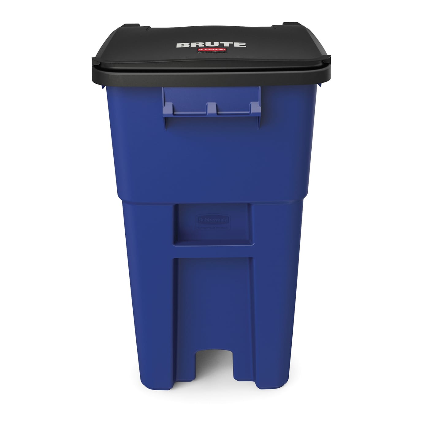 This 50 gallon rollout container with lid features a tough, durable design with rounded corners and smooth contours that are easy to clean. It's attached hinged lid swings back for quick access and locks for security, while the large 8" wheels offer good mobility over uneven surfaces for speeding up trash collection and material handling.