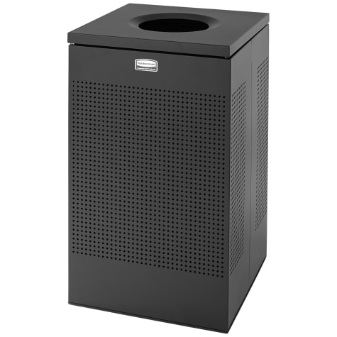 This Rubbermaid 20 gallon trash receptacle features a sleek, perforated steel design. The Lift‐off body facilitates easy emptying of the leak‐proof rigid plastic liner. It features leg levelers for uneven floors.