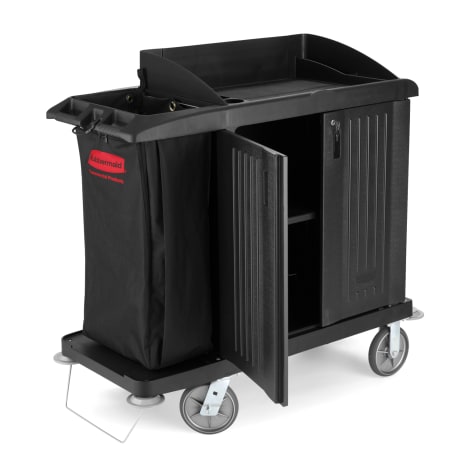 Rubbermaid Black Compact Housekeeping Cart w/ Doors