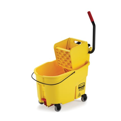 This Yellow 44 quart mopping combo features an extra‐large bucket for handling the biggest jobs with a high efficiency side press wringer to speed up your mopping time. The side press wringer style has a durability life of over 50,000 wringing cycles, as compared to an average usage life of only 860 cycles on traditional types of wringers. This combo bucket has foot pedal‐operated water evacuation that requires no lifting or straining, plus premium tubular steel and structural web molded plastic construction that will withstand heavy use.