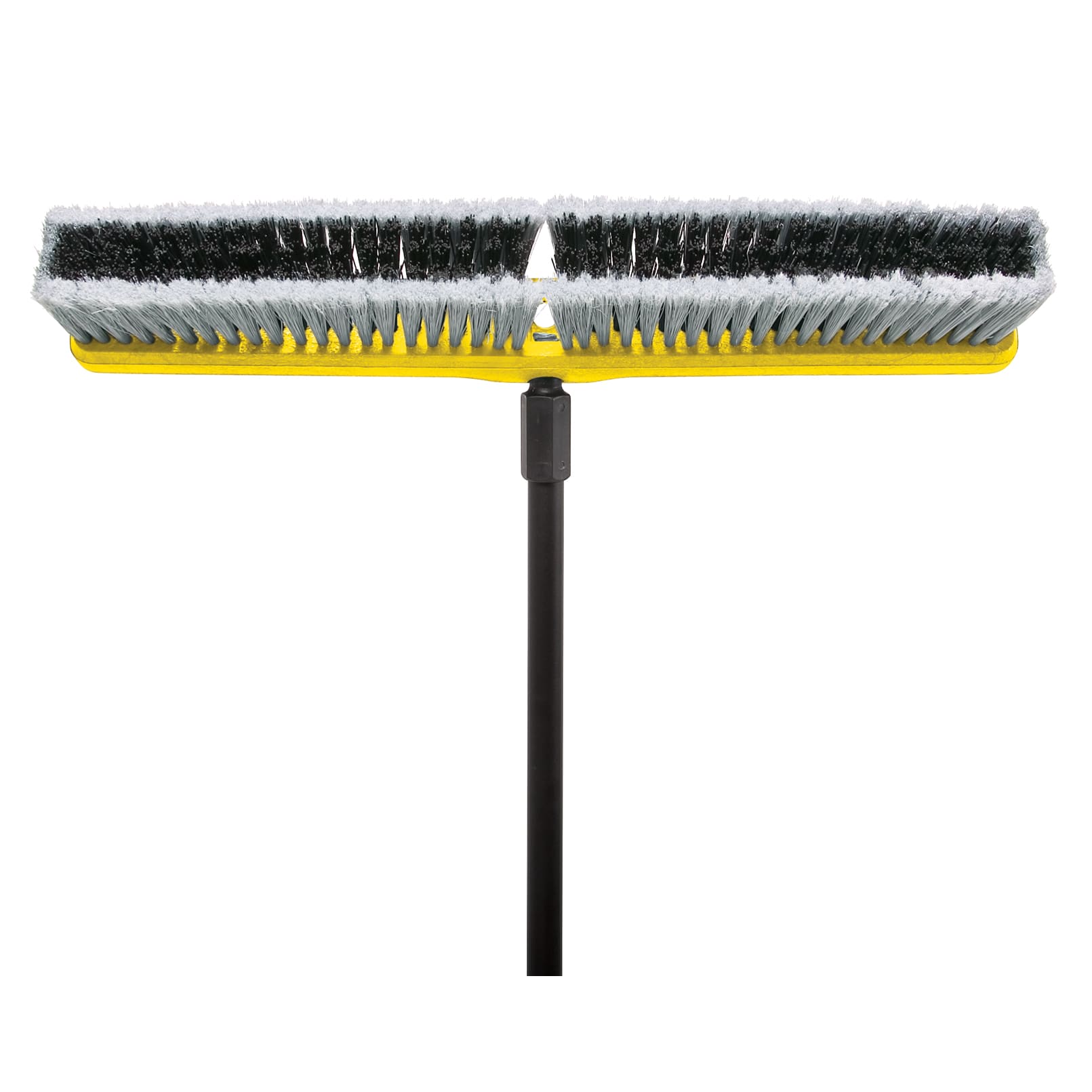 This medium‐duty, multi‐surface 24" floor sweep features long‐lasting gray polypropylene bristles that remove heavier dirt and debris from both rough wood and smooth floor surfaces.
