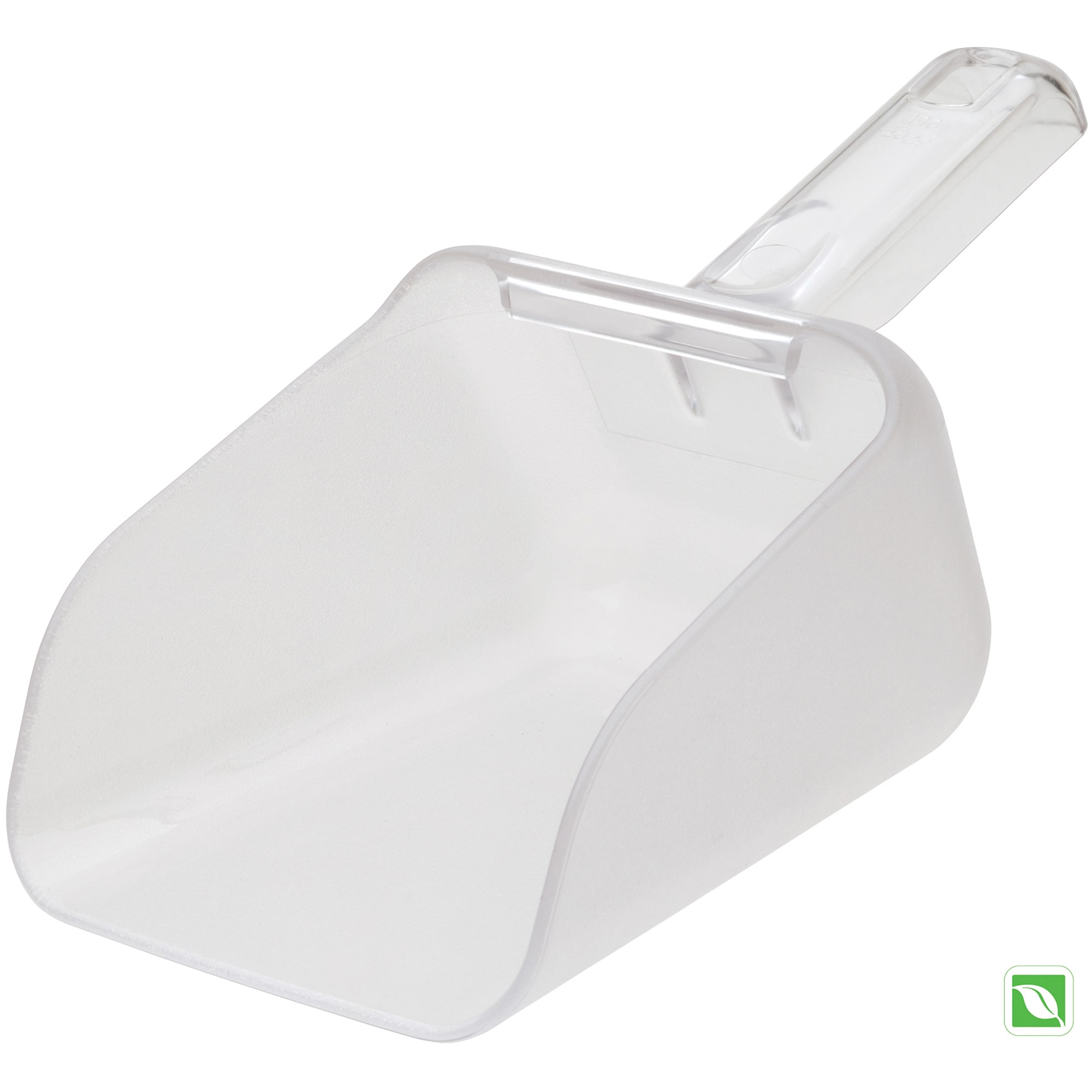 This clear 32 oz. contoured scoop is made of durable, break‐resistant polycarbonate, features smooth surfaces for easy cleaning, and is dishwasher safe. It fits ingredient bins 3600‐88, 3602‐88 and 3603‐88.