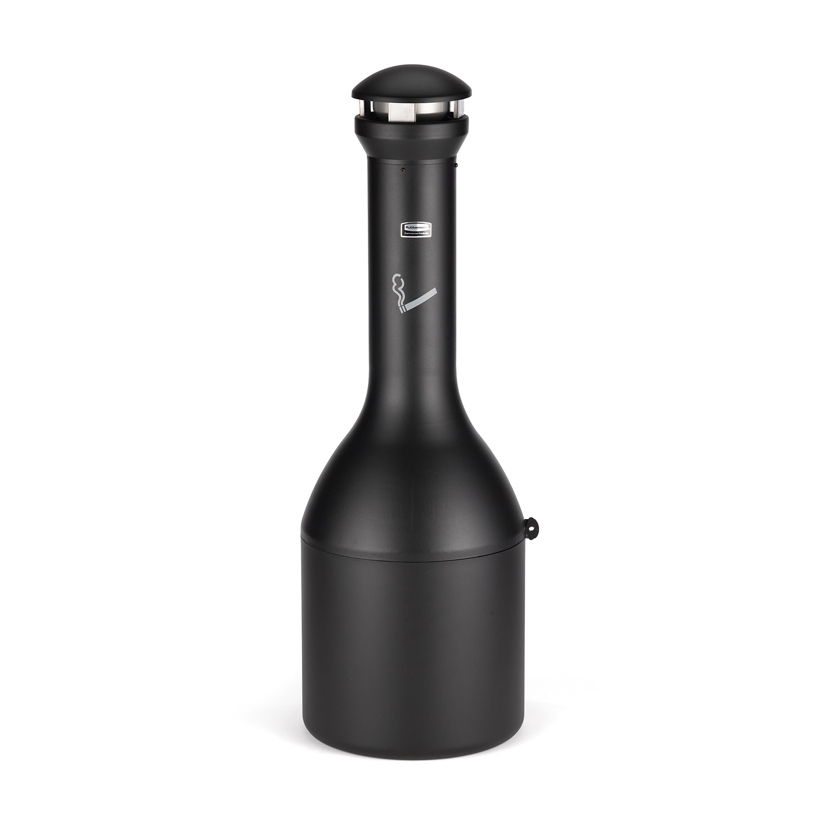This black traditional‐style smoking receptacle features stylish, fire‐safe, all‐metal construction with a 360 degree disposal area and a domed top for weather resistance. It's stainless steel snuff plate minimizes smoldering, and its obstructed funnel helps reduce jamming. Guidance tabs on the collar and base make removal and reattachment easy when emptying. This receptacle is good for high‐traffic areas, with its large capacity and integrated padlock tabs that prevent tampering and theft.