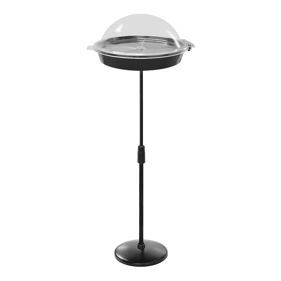 This floor stand sampler from Cookup features a 36" pedestal with a metal base for a convenient sampling experience! It includes an ABS plastic ice bowl, removable insert tray, clear acrylic dome, pedestal poles and base. The ice bowl can be filled with crushed ice or one ice pack to keep items cool. This sample dome is 16" in diameter and is perfect for grocery stores, markets or catered events.