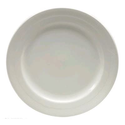 Add this Impressions Undecorated Plate to your dining presentation for a striking symmetry look. Bring a tailored look to your table with the embossed lines on the mid‐rim of this bright white porcelain.