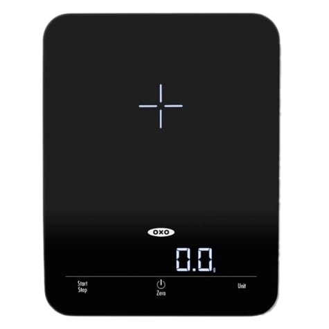 Whether you are making coffee, baking, or anything that requires accurate measurements, the OXO Good Grips 6 pound Precision Scale provides fast, precise measurements. This scale measures from 0.5 g up in 0.1 gram intervals. It weighs in grams, ounces, and pounds while the zero function tares the Scale so you can add more ingredients in a snap. This scale is easy to read, compact in size, and easy to clean.