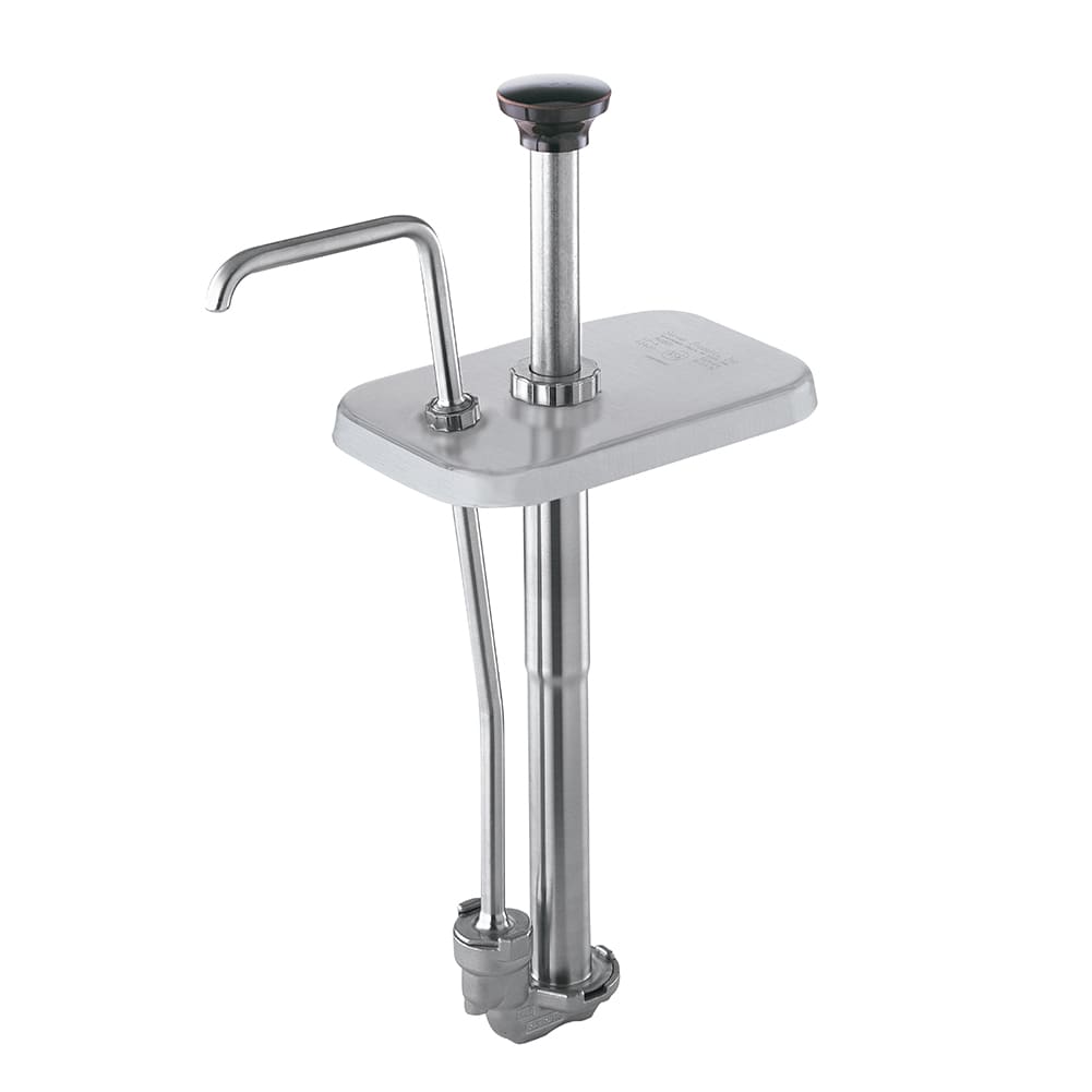 The CP-F stainless steel pump dispenses precise portions from your standard 3 1/2 quart (3.3 L) fountain jar. Each press or stroke serves a 1 1/4 oz (37 mL) maximum portion or can be reduced in 1/8 oz (3.7 mL) increments.