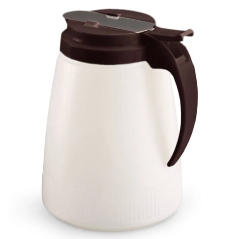 This Vollrath Dripcut server is lightweight and attractive A safe alternative to glass, this plastic server is easy to clean and has molded‐in graduated markings that are easy to read. The smooth handle provides a comfortable grip, and the thumb tab helps control pouring speed to ensure smooth operation. Designed for syrups, sauces, dressings and more.