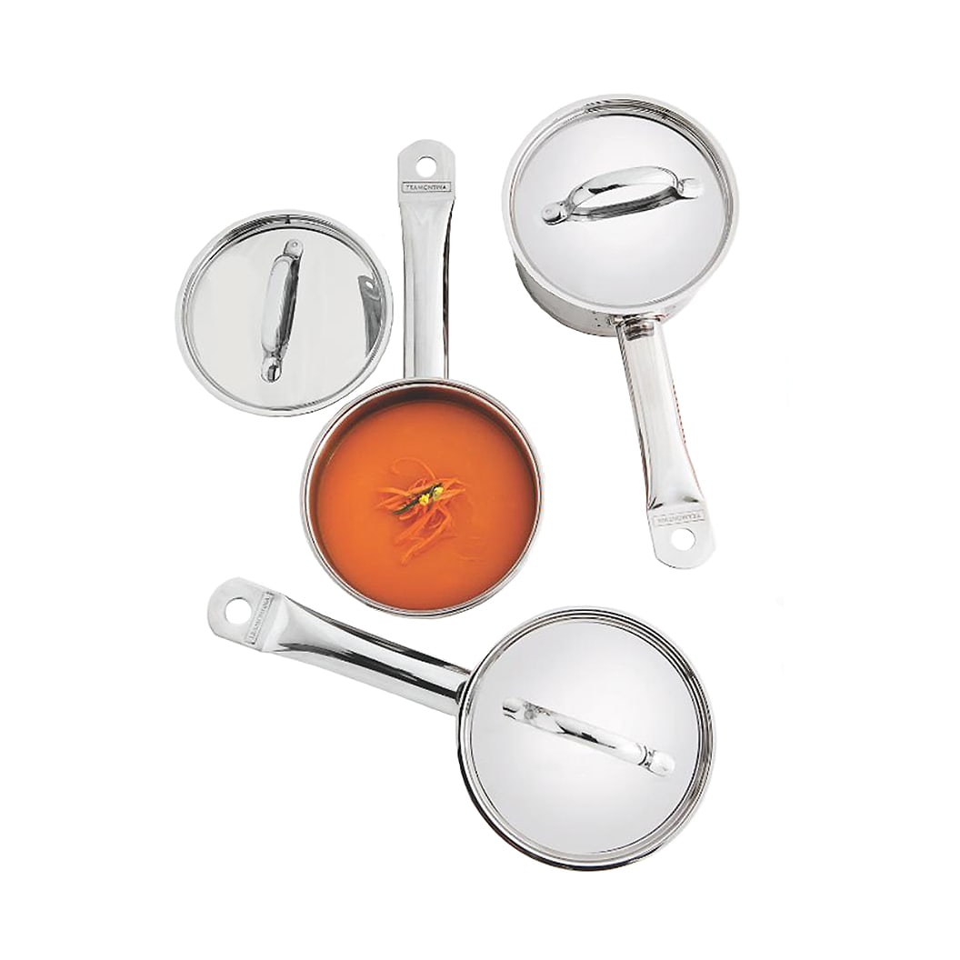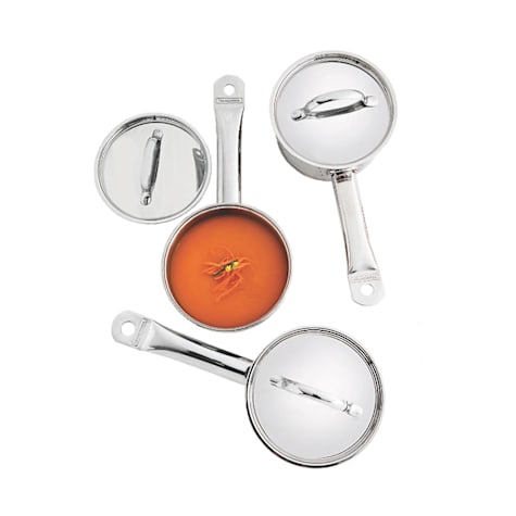 This 7‐piece cookware set features durable stainless steel construction and includes a 10" saute pan, 1.5 quart sauce pan with lid, 3 quart sauce pan with lid and a 5 quart Dutch oven with lid.