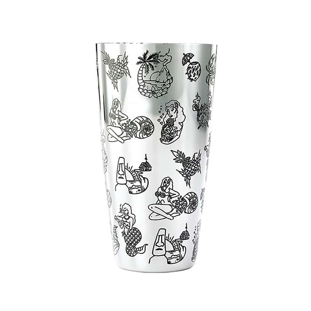 This Barfly® Shaker is the ultimate tool for cocktail enthusiasts and professional bartenders. Crafted with precision from high-quality 18/8 stainless steel, this 28 oz. shaker boasts a satin finish interior and a stunning mirror finish exterior, adorned with unique Tiki etched designs.
