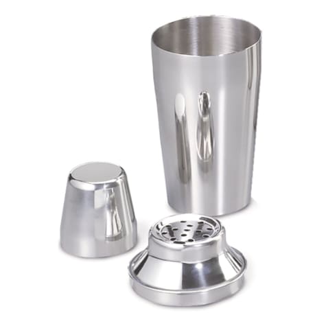 This 3‐piece bar shaker set from TableCraft includes a 16 ounce shaker, 3 ounce jigger and a built‐in strainer.