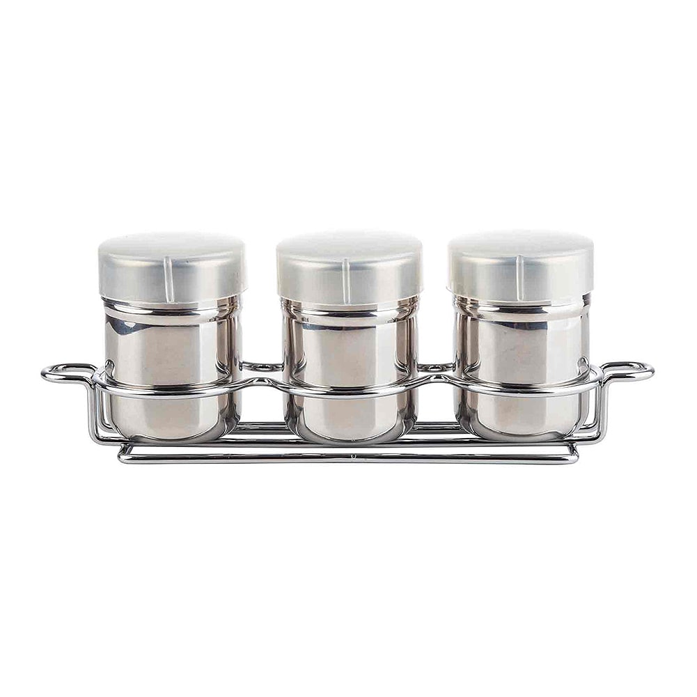 Create the perfect coffee station with this 3‐piece shaker set from TableCraft. Use for dusting your drinks with sweet toppings, then store in the stylish rack. This set with rack includes: (3( Shakers "Cinnamon", "Cocoa" & "Nutmeg" & (3( Storage Caps.