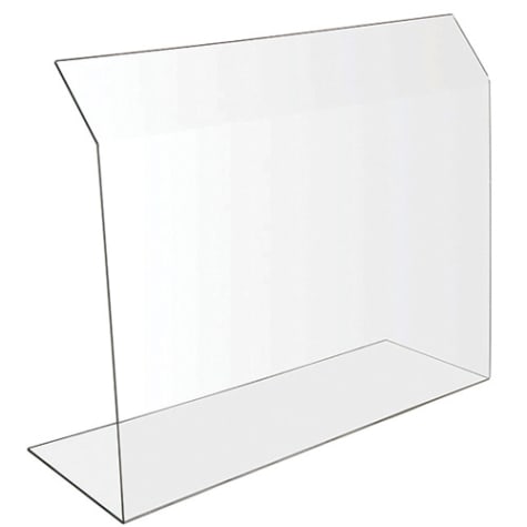 This Bon Chef standalone health safety shield requires no assembly so it is ready to use at checkout lines, service counter, or anywhere you interact with the public. They have a clear, sleek design that is easy to clean using non‐abrasive cleaners only. Do not use ammonia containing cleaners.