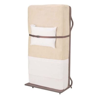 This twin size mobile sleeper from Sico® features a spill and stain repellent vinyl mattress and foundation ticking. It is also tear and puncture resistant and contains anti-microbial and fungal additives to prevent bacteria growth. This mobile sleeper has straps that are strategically positioned to hold the pillow, bedding and mattress in place during transport and storage. It is easy to transport, as the light weight design allows it to roll quietly through hallways on casters. The bed conveniently fits through standard doorways while in the vertical position. Perfect for hospitals and hotels!